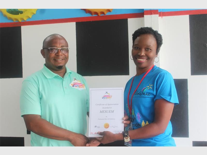 Jimmy Manaka hands over a certificate of appreciation to the Polokwane Museum. Here is Rudzani Mudau accepting this on behalf of the museum.