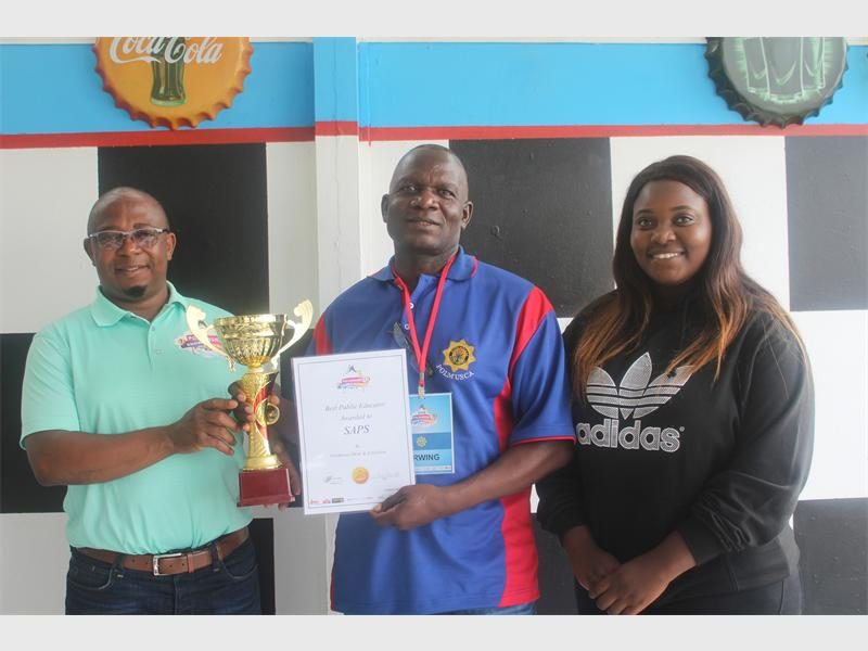 Jimmy Manaka and Tumelo Monareng flanked Captain Radzilani Nemavhola who accepted the award for the best public educator on behalf of the SAPS.