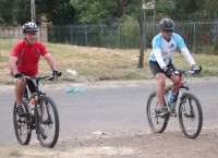 Mr Garth Calitz and Ms Louise Linde at one of the illegal signsboards between Evander and Trichardt.