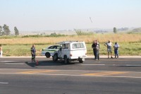 One man died in an accident between this bakkie and a bus.