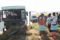 Passengers of the bus wait for alternative transport.