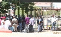 Police search the supporters of the three alleged drug dealers at Secunda Magistrate’s Court and employees of the Immigrations Office check their immigration documents.