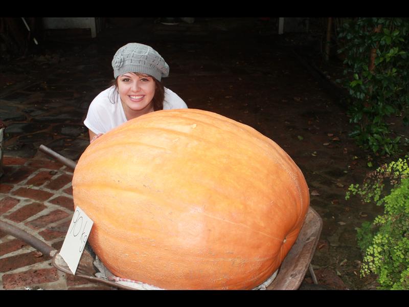Die pampoen, wat 90 kg weeg, gaan opgesny en aan familie en vriende uitgedeel word.
