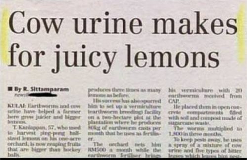 5. Cow urine makes for juicy lemons