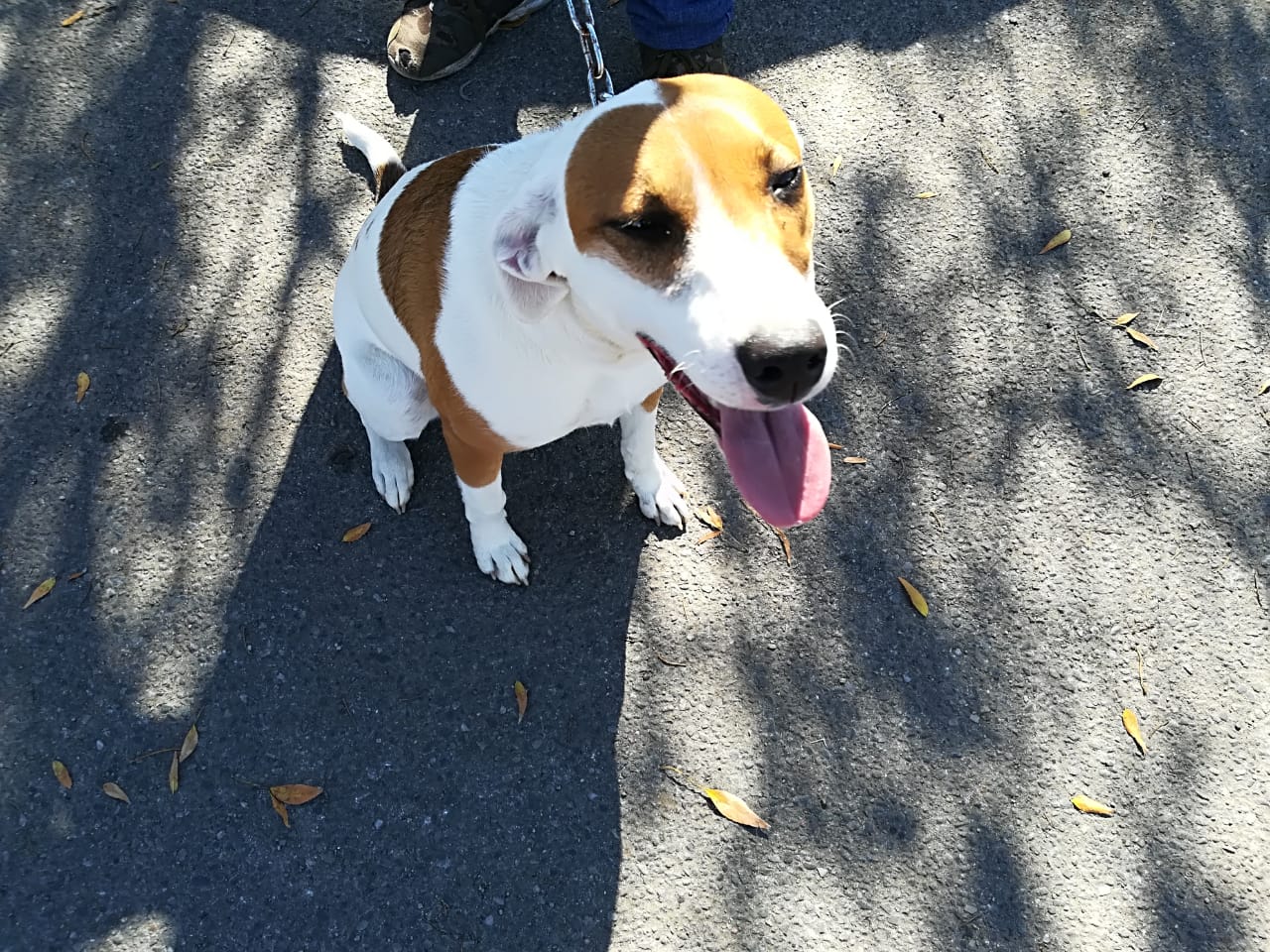 Two car guards at the China Mall in Secunda found a Bassett and a Jack Russell cross tied to a chain this morning at the taxi rank in the CBD.