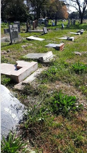 Die grafstene hoofsaaklik in blokke R en N is geskend. Die groot hartseer is dat ook die baba blok van grafstene hierdeur geraak word. Annette Smit, inwoner, is erg ontsteld oor die voorval.