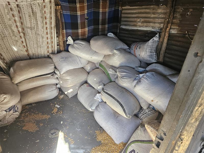 A source close to the investigation said security personnel were informed of more storage facilities nearby. The teams were then led to several zinc shelters, where they confirmed that stolen maize was stockpiled in large quantities.