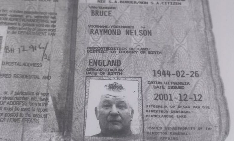 Raymond Nelson Bruce (82) was born in England. A South African identity document was issued to him in 1982.