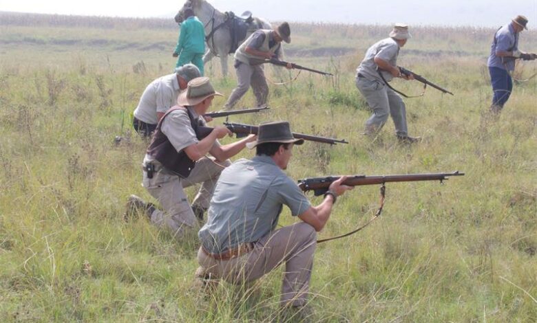 Die ‘Britte’ neem hul posisies in vir die skyngeveg op 11 April tydens die Boer en Britdag by die Val Hotel. Foto: Jana Oosthuizen