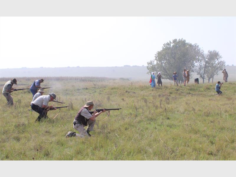Buiten die stalletjies wat heerlike kos en drinkgoed verkoop het, kon mense die skyngeveg tussen die ‘Boere’ en ‘Britte’, wat sowat 6km buite Val plaasgevind het, kyk.