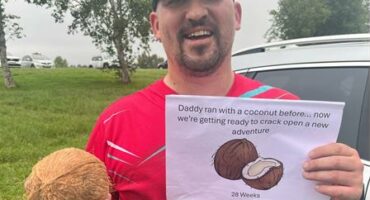 Dad-to-be runs weekly with baby-sized fruit to celebrate growing baby