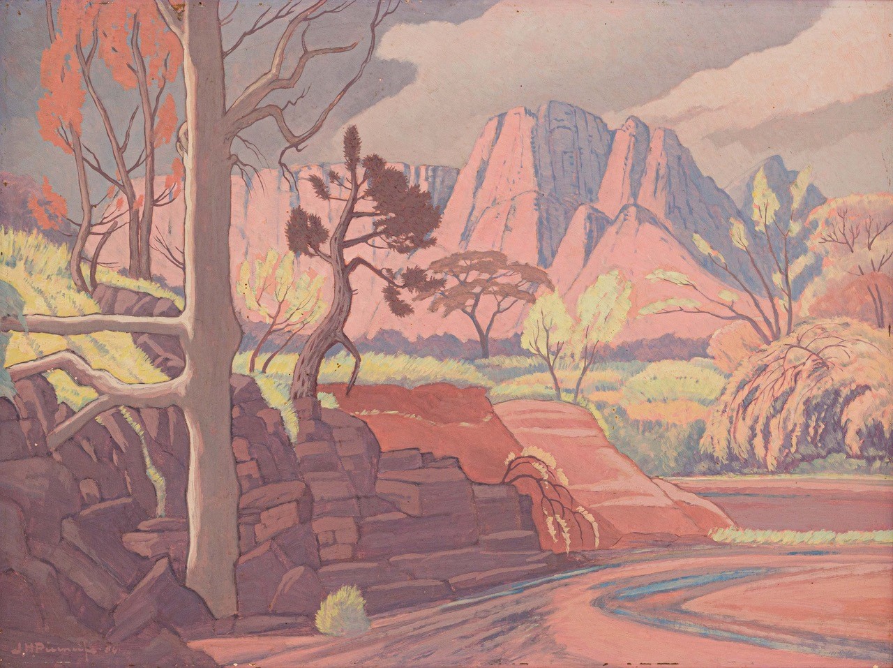 H. Pierneef, South Africa’s preeminent landscape painter with a global collector base, is represented by a substantial offering. Landscape with Mountains and Trees (estimate R1.5 – 2m) is an iconic work from 1954 and features an inventory of must-have motifs in a Pierneef. There are two views of a farm southeast of Johannesburg, both painted in 1932, including Extensive Landscape, Study for Klipriviersberg, Alberton (estimate R1.2 – 1.6m).