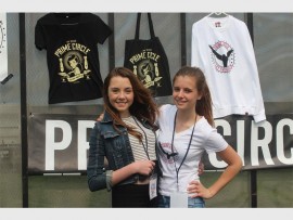 Primed out… Danielle Hechter and Geenamae Steyn sell Prime Circle memorabilia at the Skyline @Saints festival hosted at St Stithians College.
