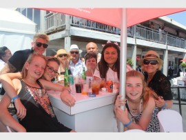 BOND: Back: Dylan Nel; Lorraine and David Jackson with Lawrence and Elzane Gebber; Front: Marsha Lodder, Codi-Lee Jackson, Nikita Gerber Desire Miller and Kyla Holzapfel bond at the 50th anniversary celebration of the Galencia Property South African Derby.