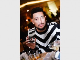 MATCHING: Artist AKA shows off his matching phone case.