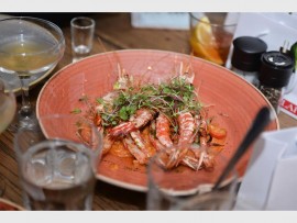 PRAWN TIME: One of the meals enjoyed by guests who attended Lennox Bacela’s birthday bash at Gemelli Italian Restaurant.