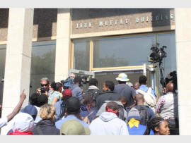 When students congregated on the stairs of the Great Hall, a group of students began pelting stones as the private security guards who were blocking the entrance to Solomon Mahlangu House. Two private security guards threw stones back at the students.