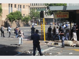 BRAAMFONTEIN - A bus was torched and a store looted after police and students violently clash in the Streets of Braamfontein.