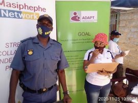 Doing their part for the 16 Days of Activism for No Violence against Women and Children campaign officers from the station and members of the organisation went from door to door on 25 November to engage with members of the community.