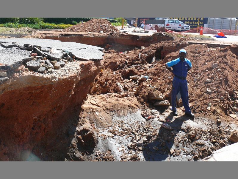 He contacted Johannesburg Roads Agency which said repair work would begin on 9 October, but as yet agency workers had just opened another access point for vehicles to use.