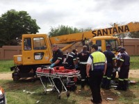 On arrival they found a man trapped beneath a crane. It is believed that while he was working with the gearbox, the mobile crane ran over the technician and trapped him underneath crane. He sustained serious injuries.