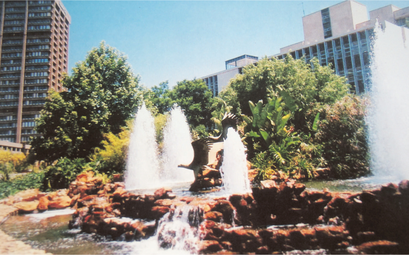 The water began flowing in the Barlow Fountain in 1982 in front of the then-famous Sandton Civic Centre on the corner of Fifth Street and Rivonia Road.