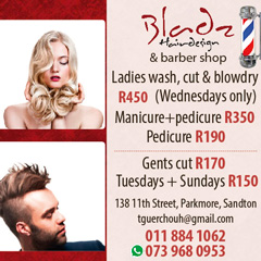 Ladies, let Jesse style your hair and for the gents, Tarik is the barber to go to. These are just two fantastic hair gurus Bladz in Parkmore has to offer. Leave all your winter hair woes in their hands this winter and step out looking your best!