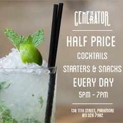 Located at 130, 11th Street Parkmore, The Generator has established itself as a meeting point for the community – whether it is for a daytime business meeting, cocktails with friends, a pub lunch or a night grooving to great music. Private function rental has become legendary due to the great music and free rental offering.