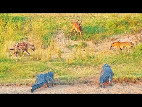 An impala not only had to contend with a hungry leopard, but hyenas and crocodiles too!