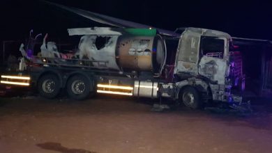 Petrol tanker in flames, driver seriously injured