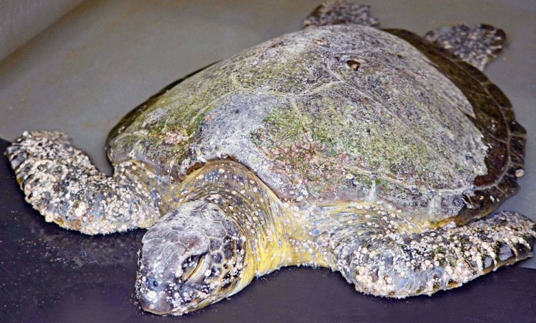South African Association for Marine Biological Research communications officer, Ann Kunz said the adult green turtle, since named Gabby, was…