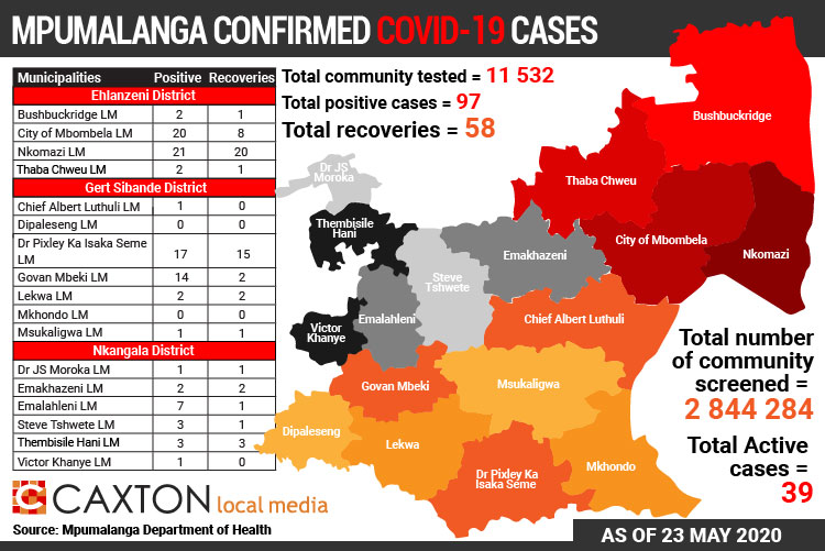 Covid-19: The number of confirmed cases in Mpumalanga as of May 23