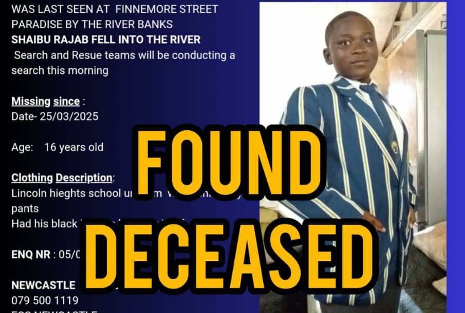 The body of Shaibu Rajab was found in a river in northern KZN on Friday morning after a three-day search…