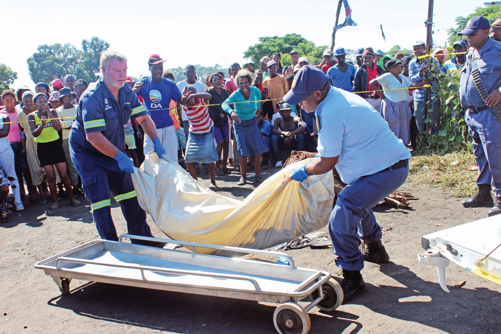 The arrival of the Public Order Police in Nyala trucks to disperse the crowd was too little too late as it seemed that the victim had already passed away. Police said they arrived on the scene within minutes of receiving a call but that ‘the community charged at us’, forcing the ambulance and police drivers to make safety U-turns. The community, especially elderly women, chanted and ululated hatred and songs of violence. They sang “Go on young man, but you will never see and enter the heaven’s door.” Police had to escort the Pathologists’ vehicle as it left the area. Police spokesperson Sergeant Gertrude Makhale confirmed that two bodies were found at different areas on Saturday. She said cases of murder are being investigated. No one has been arrested by police. Police do not condone mob justice: “We always appeal to the community to arrest and hand over suspects so justice can take its course.”