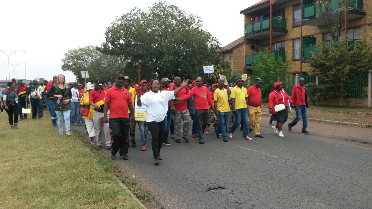 VANDERBIJLPARK. – Members of the South African Municipal Workers Union (SAMWU) today marched from the Licensing Department in Vanderbijlpark to the Emfuleni Local Municipality (ELM) premises to handover a memorandum.