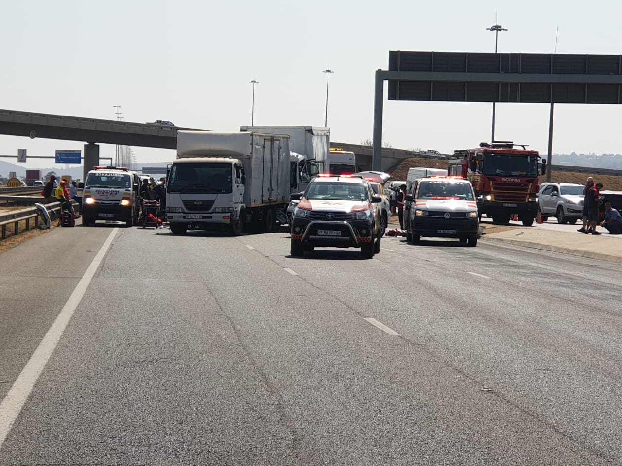 Gauteng: At 11:46 yesterday (Tuesday) morning Netcare 911 responded to reports of a collision on the R21 direction South just passed the Flying Saucer interchange.