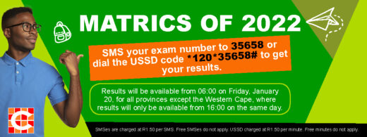 Alternatively, dial the USSD code *120*35658#. You will then receive further instructions to gain access to your results after 06:00 (or 16:00 for students in the Western Cape) on Friday, January 21.