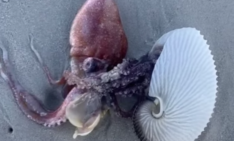 Scientist finds a paper nautilus octopus on Muizenberg Beach