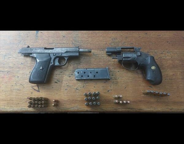 A 9mm Star pistol and 24 rounds of ammunition as well as a .38 special revolver and 17 rounds of ammunition were recovered.