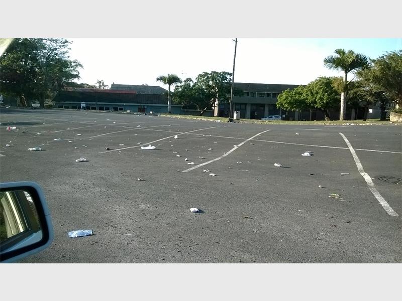 Last Tuesday there was a function held for schoolchildren at the Uvongo town hall. Despite the many refuse bins in the area, the children just left their refuse on the parking grounds!