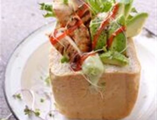 Fill your half loaf with grilled chicken breast, salad, slice avo and creamy avo mayo. To make the avo mayo whizz avocado in a blender with a squeeze of lemon juice and 1-2 tablespoons of good quality olive oil. Season and use as an eggless mayo replacement.