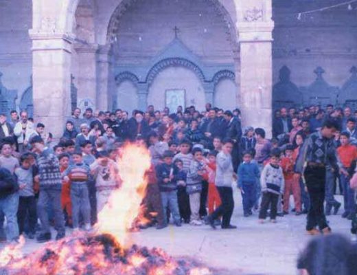 On Christmas Eve in Iraq, Assyrian families congregate outside their houses and hold lighted candles while a child reads the nativity story aloud. They then sing psalms over a bonfire made of thorn bushes. According to folklore, if the thorns burn to ashes, the family will have good luck. After the fire has been reduced to ashes, family members jump over the ashes three times and make a wish.