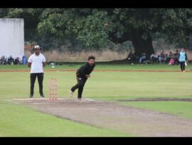 One of the highlights of the day was arguably Mortimer’s run out – first a diving misfield, off his chest, arm and chin – before he collected the ball and knocked over the stumps with a direct hit, with Meitar well short.