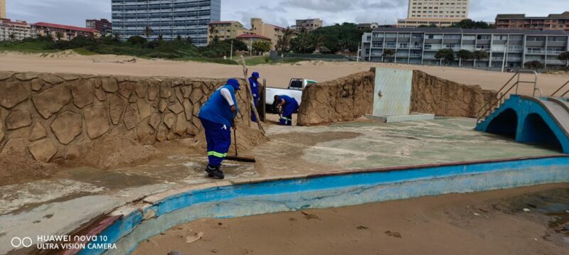 Municipal staff seen cleaning dilapidated Amanzimtoti pool
