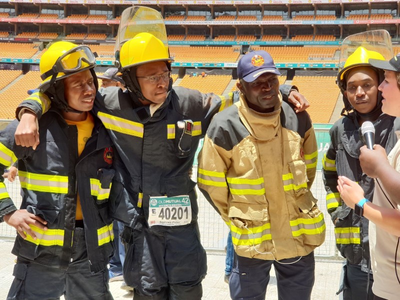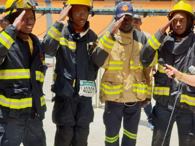 Nhlakanipho Khoza, Siphiwe Tshabalala and Nkosi Mzolo, kitted in full firefighting gear, took on the 42.2km marathon at Soweto’s iconic FNB Stadium on November 4.