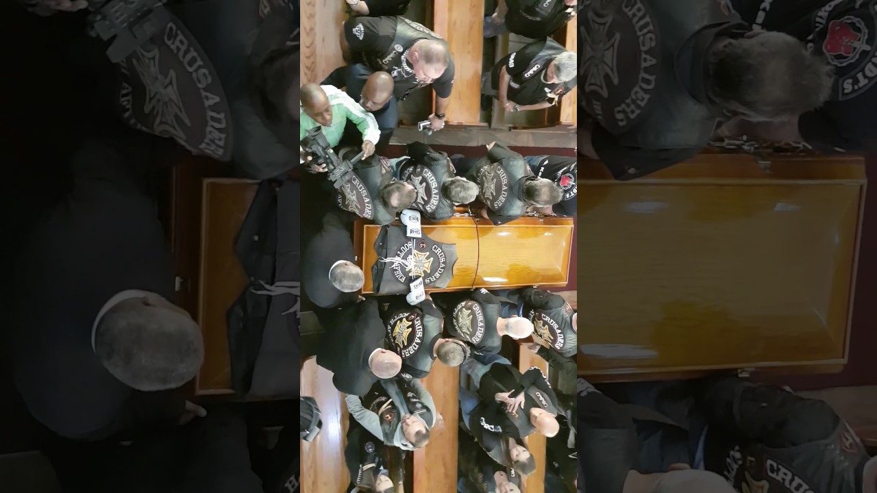 The hearse was escorted by police and followed by a convoy of bikers. Mourners filled the church to capacity with people standing and extra chairs brought in. Various media houses and camera crews were there to cover the event.