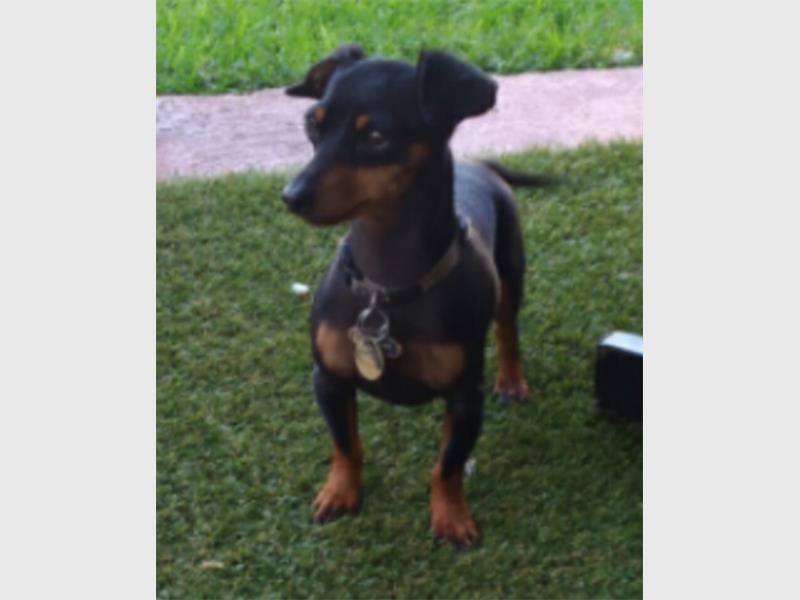 A little female miniature pincher went missing in the late afternoon on November 14 at North Road, Regent Park, close to the Sasol petrol station and the Society for the Blind.