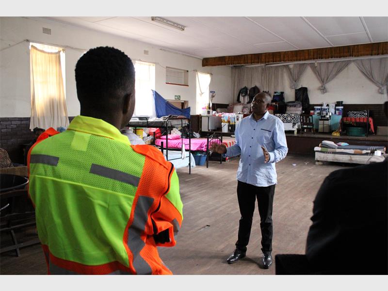The entourage moved to Pioneer Hall in Glenesk, where some of the people were placed after their shacks burned down in Booysens informal settlement.