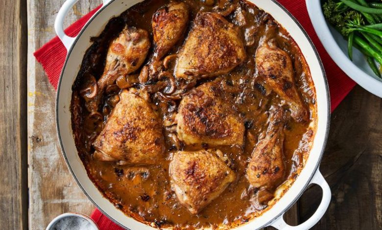 You’ll need: 8 chicken portions; paprika; 15ml sunflower oil; salt and pepper, to taste; 1 onion, chopped; 250g mushrooms, sliced; 1 packet Royco Creamy Mushroom Packet Soup; 250ml peach juice; 50ml water