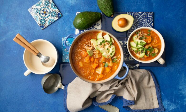 The soup can be bulked up with extra lentils or beans for a very hearty meal, and the avocado adds a delicious creaminess.